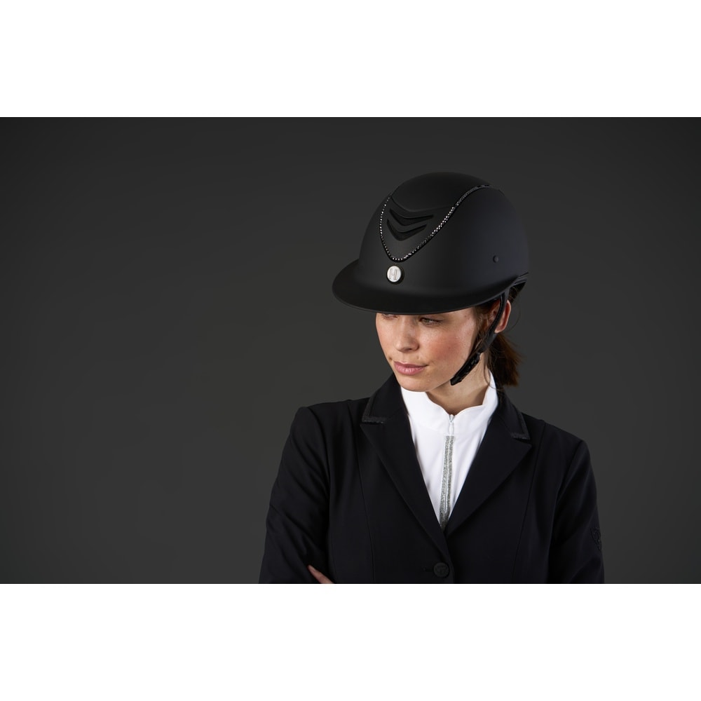 Kask jeździecki One K Avancé Lux został zaprojektowany dla jeźdźców poszukujących stylu i bezpieczeństwa w siodle. Ten kask charakteryzuje się efektowną czarną lamówką Swarowskiego, dodającą elegancji.• Elegancki design łączy bezpieczeństwo z modnym wyglądem• Zaawansowana wentylacja zapewnia komfort podczas jazdy• Lekka konstrukcja umożliwia wygodne noszenie przez długie sesje• Regulowany pasek zapewnia pewne dopasowanie do różnych rozmiarów głowy• Odpowiedni do zarówno treningów, jak i zawodów