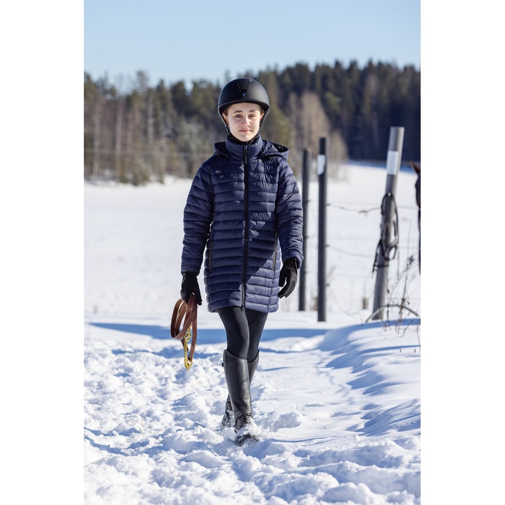 Kurtka parkowa dla dzieci Wahlsten Enargite to stylowy i funkcjonalny wybór dla młodych jeźdźców. Zaprojektowana dla komfortu i ciepła, ta lekka kurtka posiada rozcięcia jeździeckie z tyłu, które ułatwiają ruch.• Ciepły i lekki design dla optymalnego komfortu podczas jazdy• Rozcięcia jeździeckie z tyłu zwiększają mobilność• Odpinany kaptur dla wszechstronności noszenia• Kieszenie z przodu z zamkami i ciepłą podszewką, aby ręce były ciepłe• Wykonana ze 100% poliamidu dla trwałościJak używać: Idealna do noszenia na odzieży jeździeckiej, ta kurtka zapewni Twojemu dziecku ciepło i swobodę ruchu w siodle.