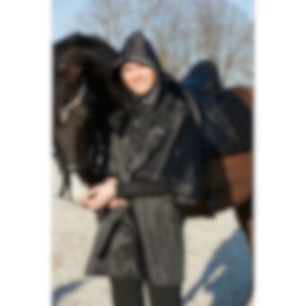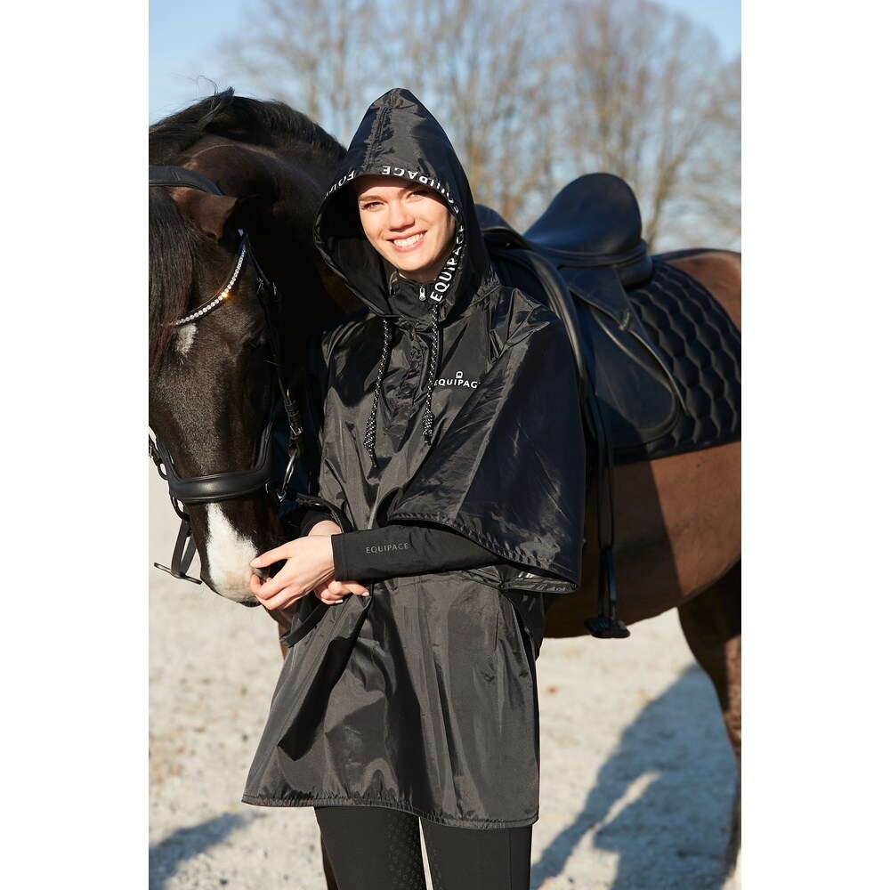 Equipage Teen Lala Regnponcho är designad för unga ryttare som behöver pålitligt skydd mot vädret under ridning eller vid evenemang. Denna huva är lätt att bära över en hjälm och säkerställer både komfort och funktionalitet.• Har en knappslå framtill för enkel påtagning• Tillverkad av vattentät 190T nylon med en vattentäthetsgrad på 3000 mm• Andningsbart material med 3000 MVP-rating för komfort• Tonala matta plasttryckknappar för säker passform• Reflekterande snören vid huvan och en logotyptryckning vid kanten för ökad synlighetHåll dig torr och synlig med denna praktiska och stiliga regnponcho.