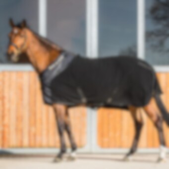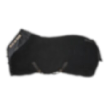 The Back on Track® Fleece Supreme Rug, now with D-Rings to attach a neckpiece. The lining is made from the unique Welltex(TM) ceramic-infused polypropylene fabric with a polyester outer cover. It is strengthened around the neck and has soft, fleece fabric around the withers to avoid chafing. To prevent overstretching, it has a reinforcement band along the back. In addition, the Rug has double buckles & crossover belly surcingles (pop closures), with a tail flap and filet string. This rug is ideal for use as a cooler or a light travel rug and may also be used to advantage in warming up muscles prior to exercise or competition and/or following exercise or competition to assist muscle recovery.