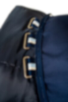 200g fiberfill-isolering ger värme utan att vara klumpig, medan det 210T glansförstärkande polyesterfodret säkerställer en mjuk och bekväm känsla mot hästens päls. Det antistatiska och antibakteriella fodret förbättrar täckets komfort och hygien. Täcket har en rak frontstängning för en säker passform och en enkel benutfällning för att öka rörelsefriheten.