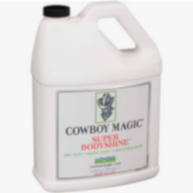COWBOY MAGIC ® SUPER BODYSHINE® Creates superior shine that repels and suspends making it easy to brush and comb away show ring and stable dust saving grooming time and money.