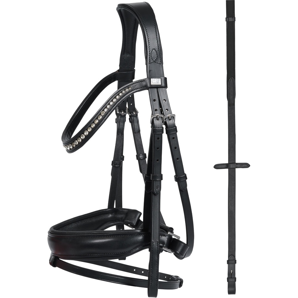 "The HorseGuard Cryll Bridle with Pull-Back Noseband and Flash is designed for riders seeking a reliable and effective bridle for everyday use or competition. This bridle offers a combination of comfort and functionality for both horse and rider.