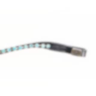 The Equestrian Essentials Cup Chain Browband is an elegant accessory featuring a stunning row of cup chain crystals. Designed with a graceful curved shape, this browband adds a touch of sophistication to your bridle. Made from soft leather, it fits comfortably against your horse's head. Two loops allow for attachment and replacement.