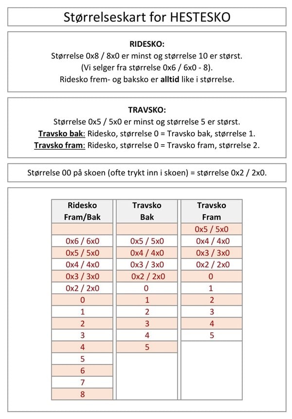 KONVERTERINGSTABELL FOR SKOSTØRRELSER |
