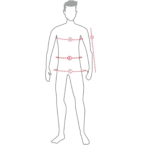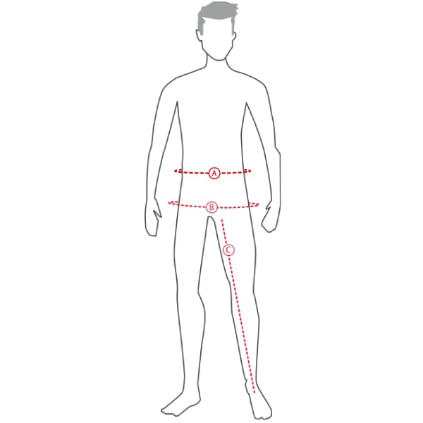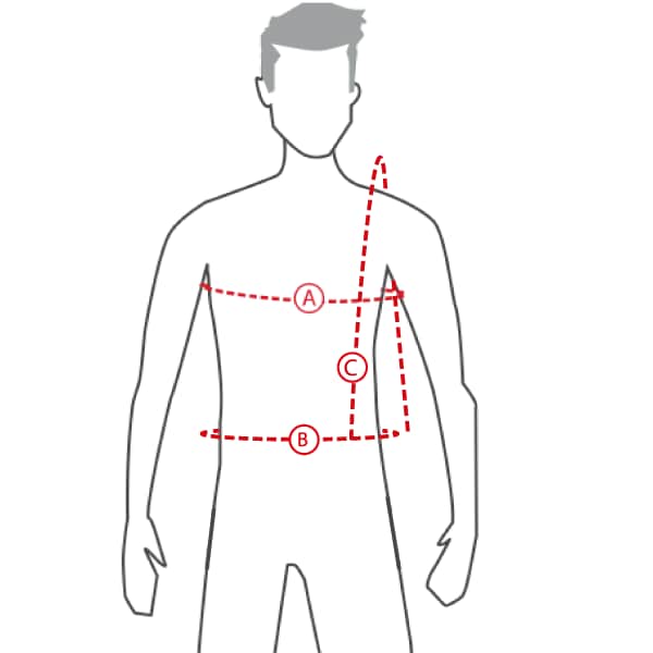 Alle mål i tabellen er kroppsmål, og ikke mål av klærne. Mål omkretsen med målebånd på følgende måte: Bryst der brystet er størst (a), midje på den smaleste delen (b) og hofter der hoftene er bredest (c). Målebåndet skal legges tett rundt kroppen, men ikke for stramt.